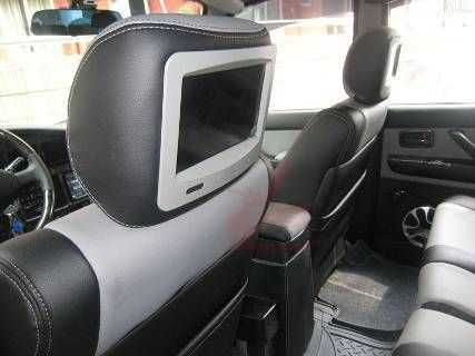 前排頭枕,兩個(gè)顯示器,完全為后排乘客而備!     全部用進(jìn)口真纖包裹,不管是耐用性還是耐磨性,我們所用的這個(gè)真纖都超過5星真皮,當(dāng)然價(jià)格也貴過5星真皮